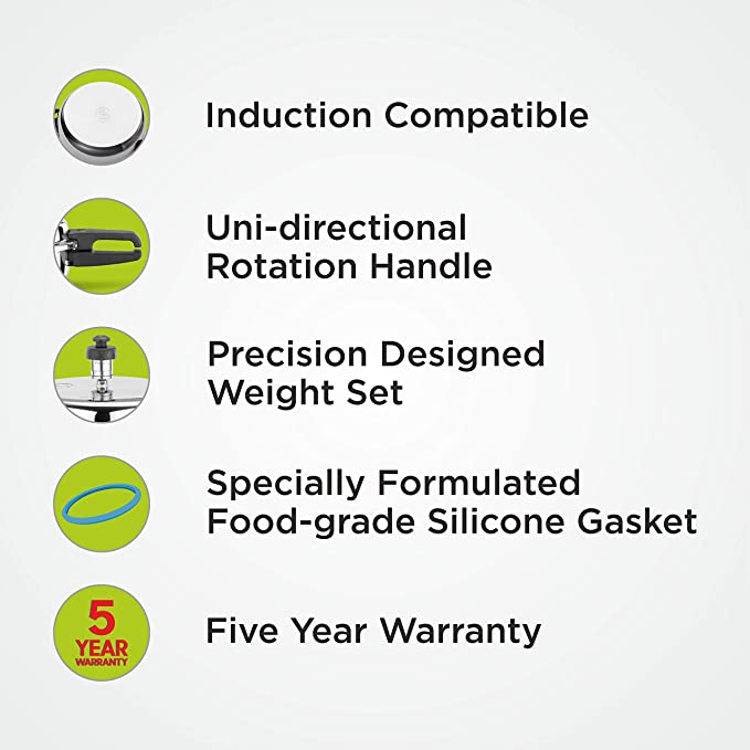 - Precisely designed weight set for fast cooking